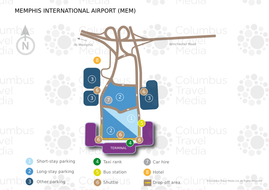 Short and long-term parking (tel: (901) 922 8065) is available in the multistorey car park next to the terminal complex; the first 30 minutes of parking is free.