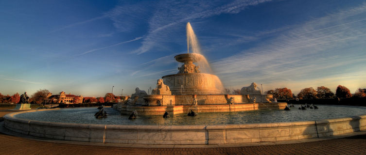Downtown Detroit Classic American architecture, Detroit Skyline view of Detroit from the stadium Cathedral of the Most Blessed Sacrament, Detroit Scott Fountain, Belle Isle Park, Detroit Boats and cityscape, Detroit