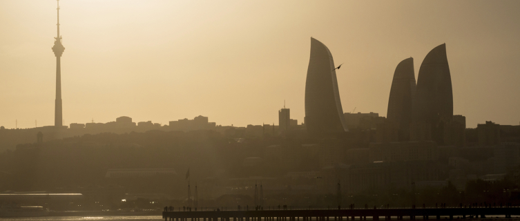 Few tourists stray from Baku into Azerbaijan's interior Baku's Flame Towers are the jewel of the city's skyline The village is overlooked by the Caucasus Mountains Vanya provides homemade bread, cheese and wine The sun sets on Azerbaijan's latest saga