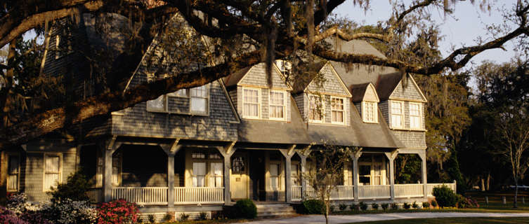 Downtown skyline at dawn, Atlanta, Georgia Swamp trees in Georgia Plantation-style house on Jekyll Island, Georgia Tybee Island, Georgia